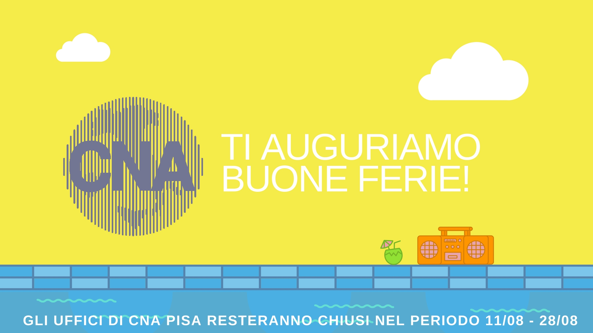 Gli uffici di CNA Pisa resteranno chiusi dal giorno 11 al giorno 28 agosto 2017.